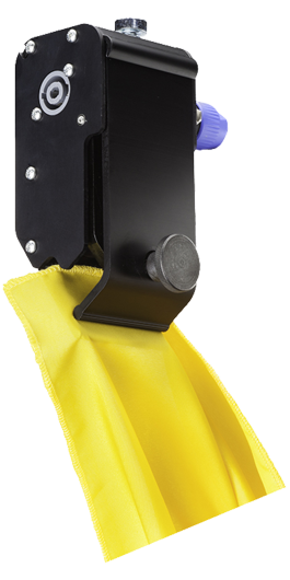 Das Kabuki-Abwurfsystem KABULKIP trägt Vorhänge, Stoffe oder Folien ohne Ösen oder andere Kantenbearbeitung, wahlweise durch reines Klemmen oder formschlüssige Verbindung.