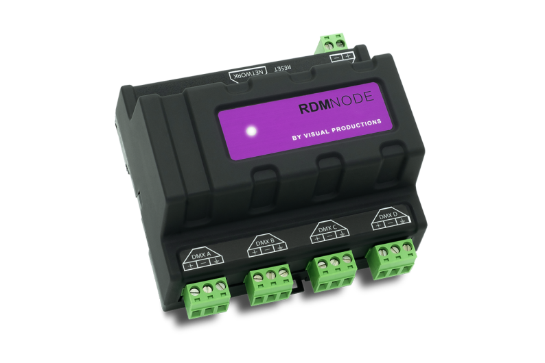 When paired with the Visual Productions CueCore3 control system, the RdmNode unlocks 4 additional universes of control, making it an essential component to your lighting toolkit.